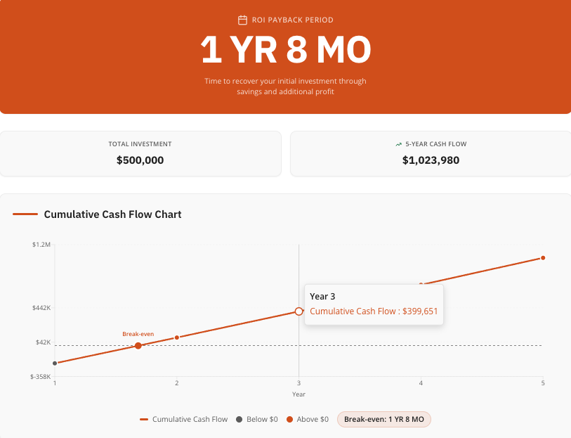 Here you can preview the calculator in use. If you’d like to learn how to use it, watch our video: Are Robotics and Automation Worth Your Investment?